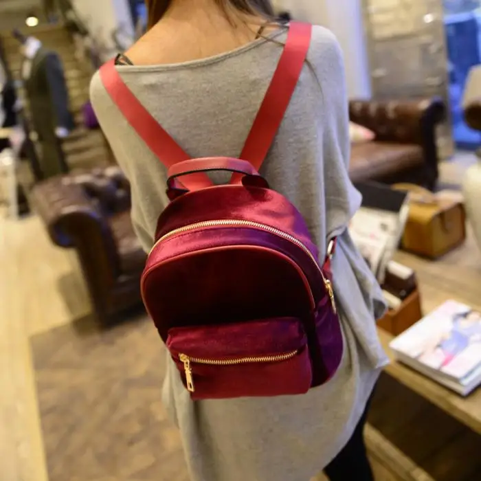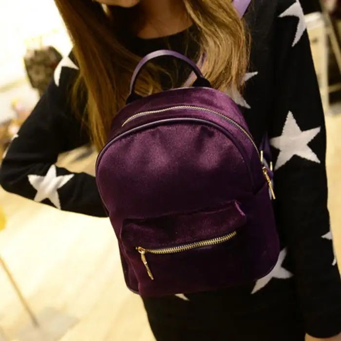 Fashion Women Velvet Backpacks Pleuche Casual Style Girls Mochila Zipper Bags WML99