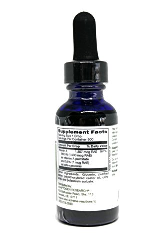 Micellized Vitamin A by Adaptogen Research providing 1,507 mcg RAE (1500 mcg RAE as vitamin A palminate and 7 mcg RAE as beta-carotene (5,025 IU) of vitamin A per single drop. This important nutrient plays an essential role in healthy immune function and vision, normal growth and development, and the health of skin and mucous membranes. Vitamin A Drops can be taken by anyone wishing to optimize their vitamin A intake or requiring supplemental vitamin A, especially those who have trouble swallowing traditional pills or capsules.* As a fat-soluble nutrient, vitamin A may be more difficult for some individuals to absorb than water-soluble vitamins. Fat-soluble nutrients require a complex series of reactions, involving bile and pancreatic acids, enzymes, and transport proteins for absorption and utilization within the body. Unfortunately, these body processes may be less efficient in individuals with certain health conditions, and also depend on individual enzyme activity levels and dietary considerations. To support optimal absorption in light of these challenges, this product provides vitamin A in micellized form, using a unique process to create extremely small, water-soluble arrangements that may be more easily absorbed and assimilated.*Feature