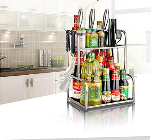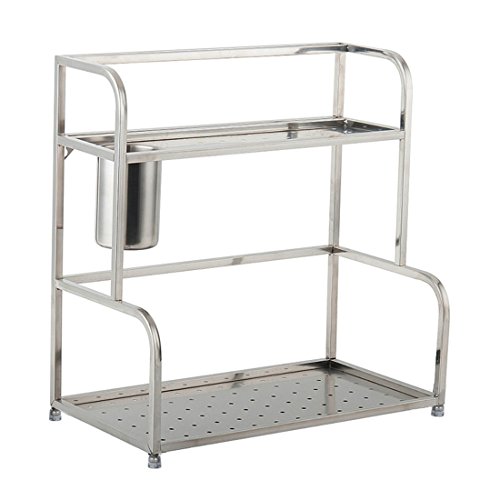 -. Brand : AEVER -. Color : Stainless Steel -. EAN : 0737590856471 -. Feature : A Space Saving Rack to Keep Jars, Packets and Bottles Organised and Accessible. / Can be Wall Mounted or used on the Back of Kitchen Cabinet Doors. / Adjustable Rubber MATS: Can Turn Adjusting, Non-slip does not hurt table-board. / Creates Additional Storage Space to Any Room, Durable Design. / Size: 30CM x 22CM x 40.5CM. -. Label : AEVER -. Manufacturer : AEVER -. PackageQuantity : 1 -. ProductGroup : Kitchen -. ProductTypeName : KITCHEN -. Publisher : AEVER -. Studio : AEVER -. Title : AEVER Kitchen Stainless Steel Rack 2 Tier Shelf with Hooks Storage Supplies Spice / Herb Rack, Kitchen Cupboard Storage Totally Rustproof -. UPC : 737590856471
