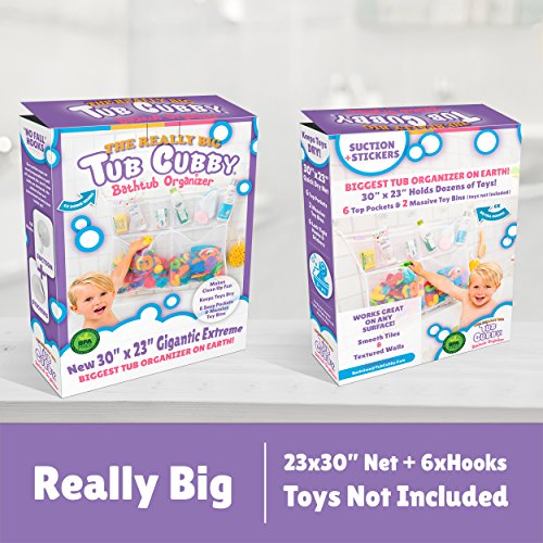 Studio : Tub Cubby Publisher : Tub Cubby Binding : Baby Product Product Description This Christmas Give the Gift of Educational Foam Letters and Numbers with Teach In The Tub Fun ABC Letters and Numbers. A great holiday gift for girls and boys, the Really Big Tub Cubby with 6 Pockets 36 Foam Bathtub Toys - Look Mom I can Clean Up All By Myself! Never have to ask your child to clean up their bath toys with this fun organizer. They will want to do it all by themselves! This product is great for organizing all of your child's bath toys, but it also has many other uses and can be used everywhere including your closet, car and is great for travel. Pre-pack your child's bath toys and shampoo or your makeup and toiletries. The Tub Cubby is a perfect size measuring 23 x 30 inches. The six upper pockets allow you to store so many toys and larger items in the double wide large bottom pocket. The three upper pockets can store soap, smaller toys and baby bath time products. The Tub Cubby Bath Toy Organizer can be placed on a wall or window with the super strong suction cups, so this product is not only good for the bathroom, but can help you organize in many other rooms in your house, car or boat. Makes a great baby shower gift! You will love the Tub Cubby! Why order our Tub Cubby Bath Toy Organizer? The Tub Cubby has 4 pockets to reach the ultimate in organizing potential 4 Heavy Duty Lock Suction Cups High Quality Netting that will hold pounds of toys and products Easy Installation Create a Mold-Free Environment for Toys and Products Try the Tub Cubby Bath Toy Organizer Today Risk Free with Our Money Back Satisfaction! *Order your product today to make sure your bathroom gets the organization it deserves! :) 0