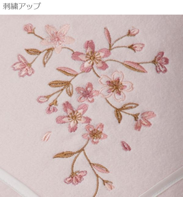 上品なさくらの刺繍が施されたシルク混綿毛布です。