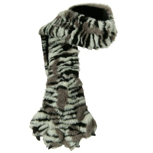 Binding : Apparel Product Description Our Tiger White Black Critter Animal Faux Fur Scarf can be unique costume accessory for costume parties especially if you are animal lovers. This thick and plush animal scarf comes complete with paw gloves that you can keep your hands in. These paw gloves are fleece lined inside for the comfort and the paw gloves are detailed with paw patch and claws. This awesome animal faux fur scarf with paw gloves is perfect for tiger costumes for Halloween and costume events. This unique and fun scarf will definitely bring some crowd for Halloween. This animal faux fur scarf is available in our other designs and amazing colors as well. 0