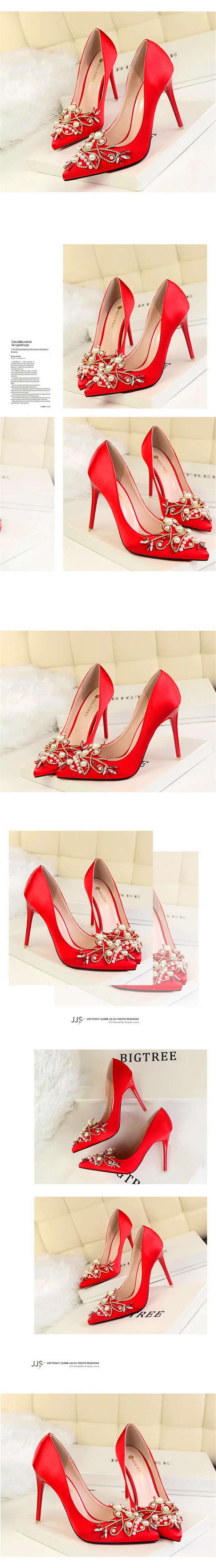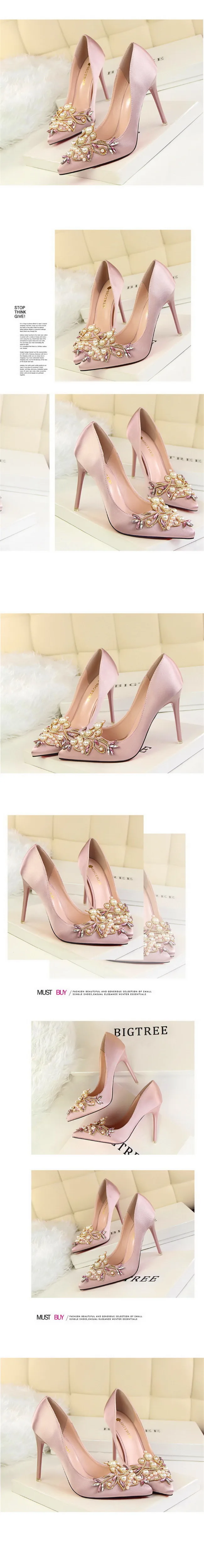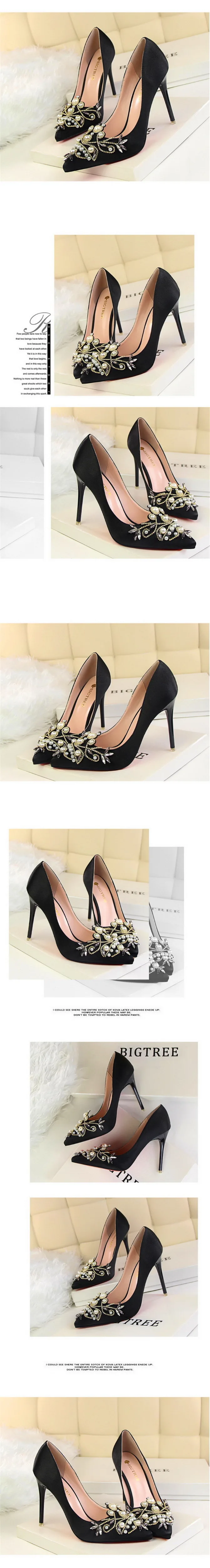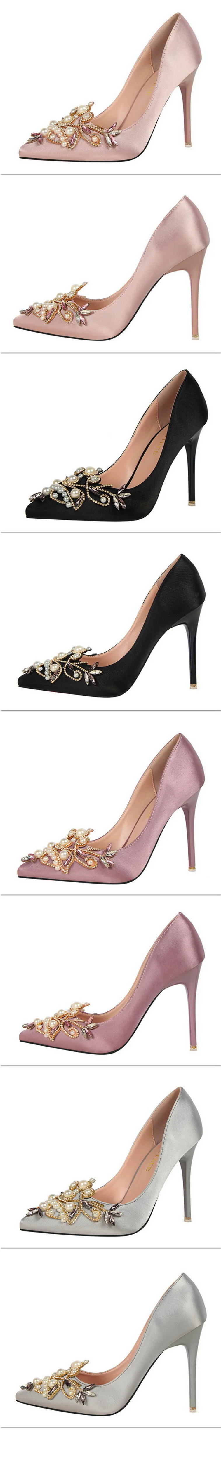Item:Fashion Pearl Crystal Sexy Pointed Toe Shallow Solid Silk Party Shoes