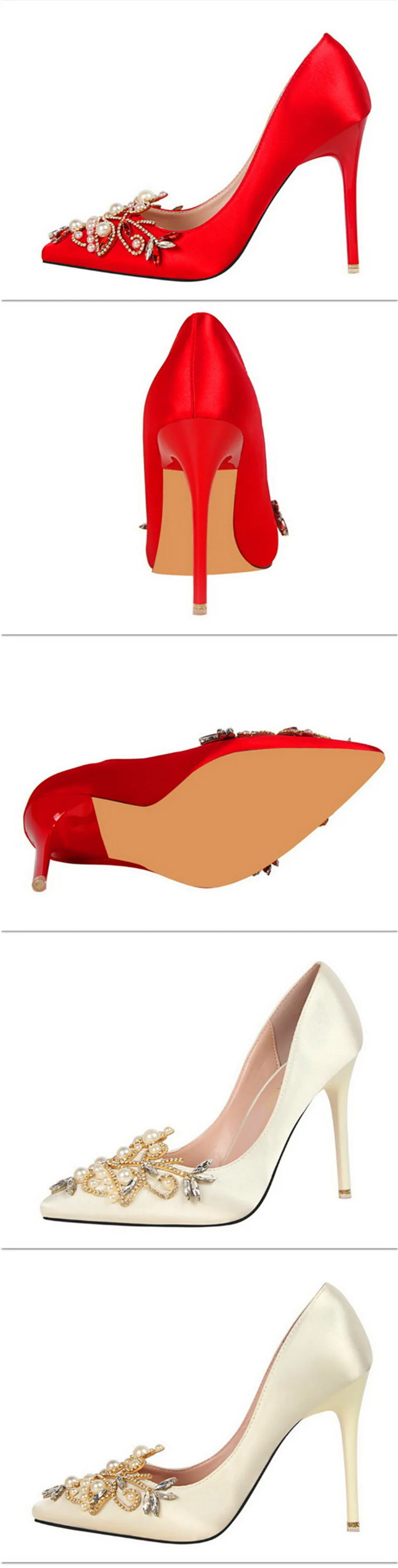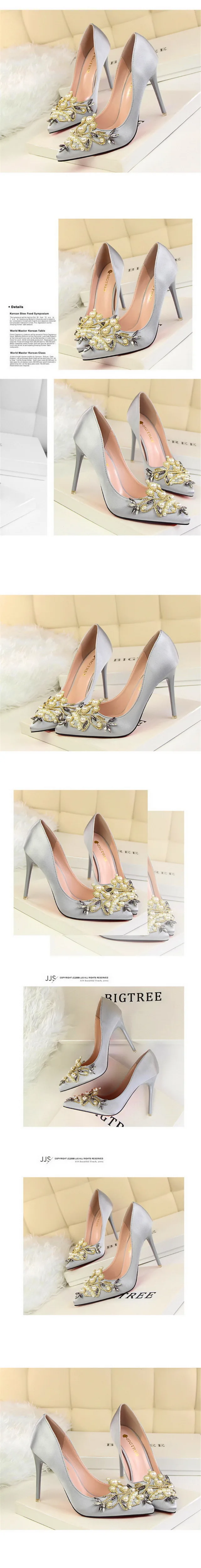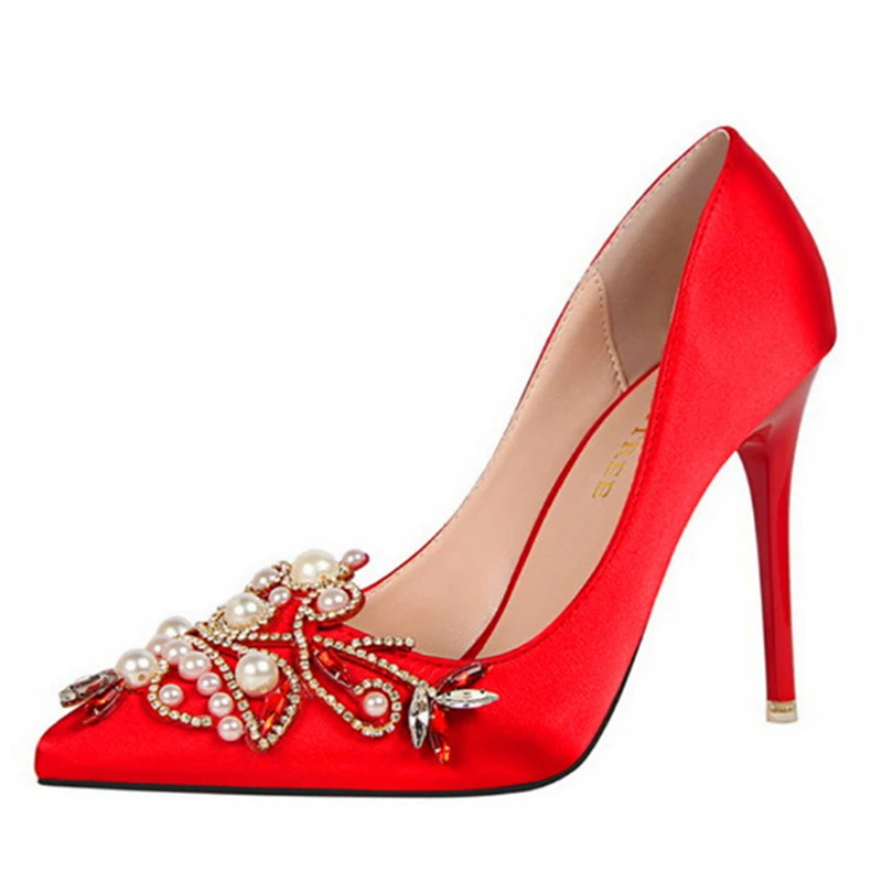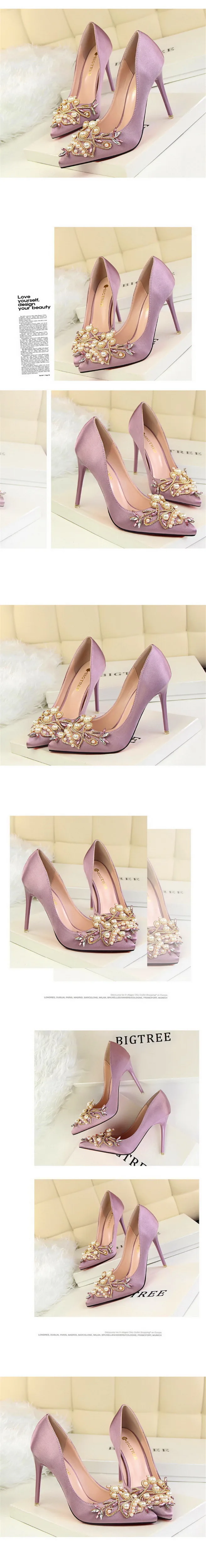 Item:Fashion Pearl Crystal Sexy Pointed Toe Shallow Solid Silk Party Shoes