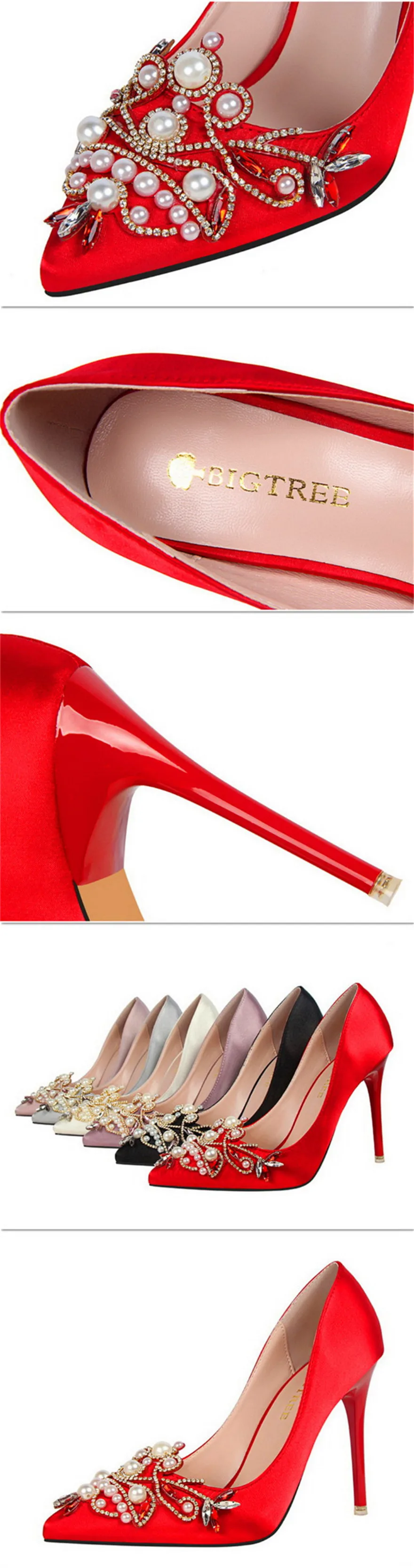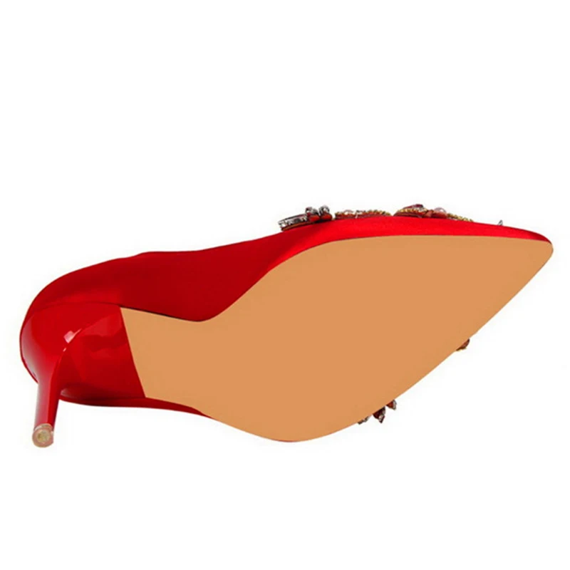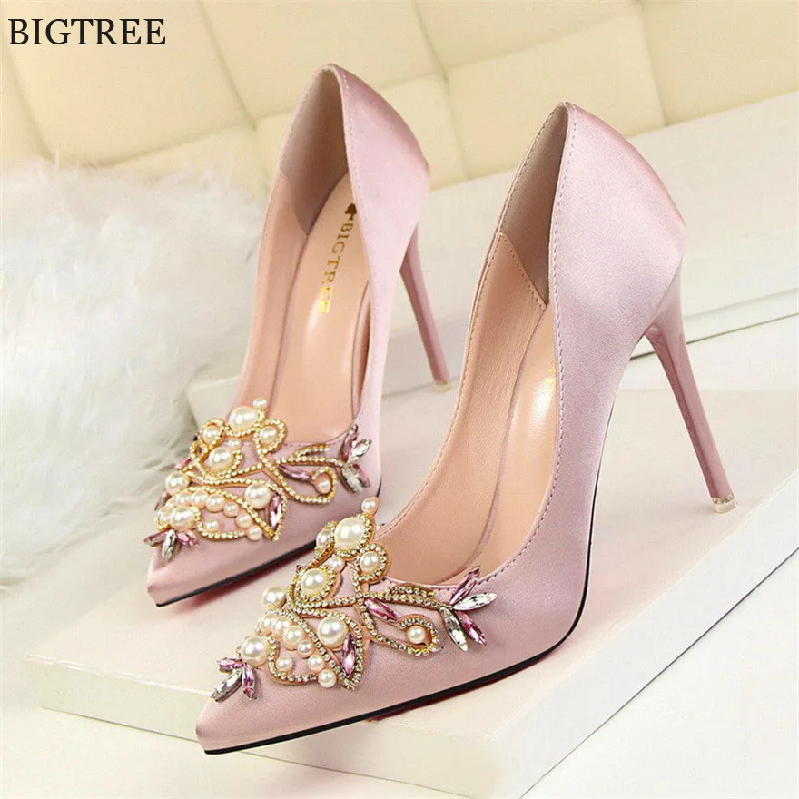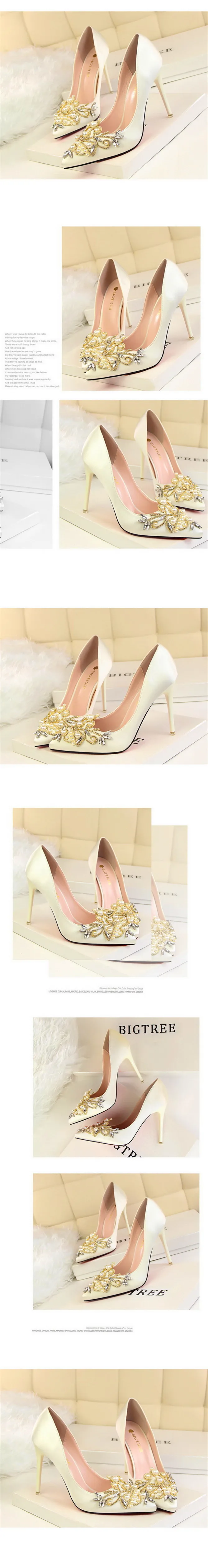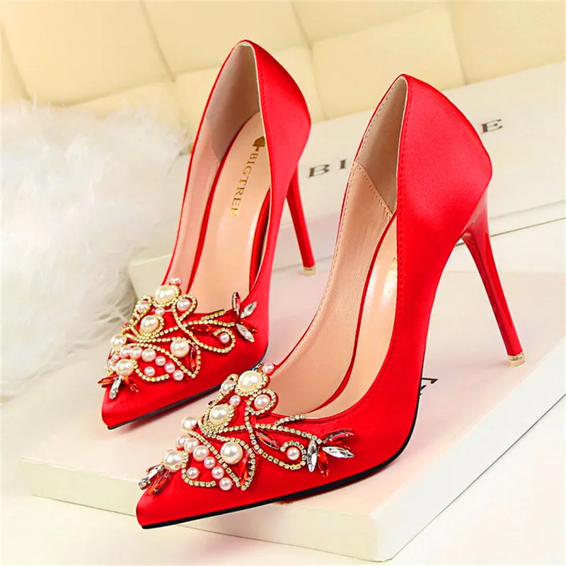 Item:Fashion Pearl Crystal Sexy Pointed Toe Shallow Solid Silk Party Shoes