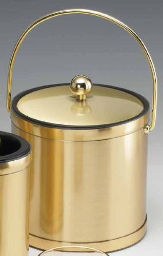 -. Title : Kraftware Mylar Brushed Brass 3-Quart Ice Bucket with Brass Bale Handle, Bands and Metal Cover