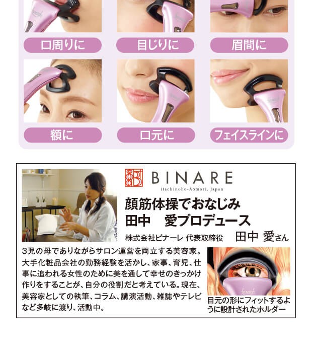 ビナーレトレーナーは、眼周りにあてるだけで「眼輪筋」をエクササイズ。