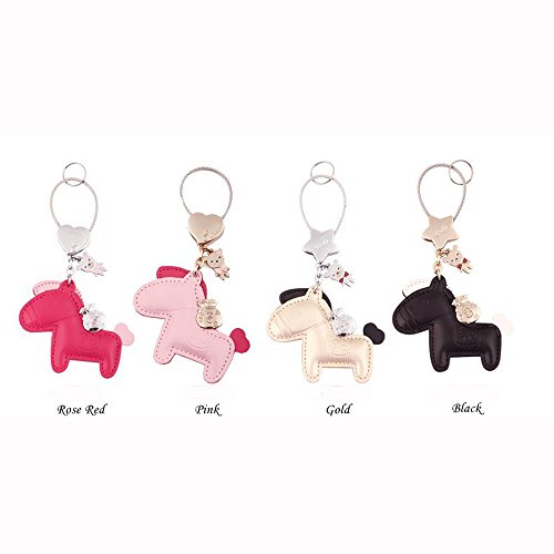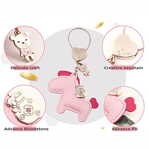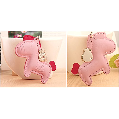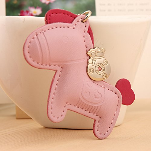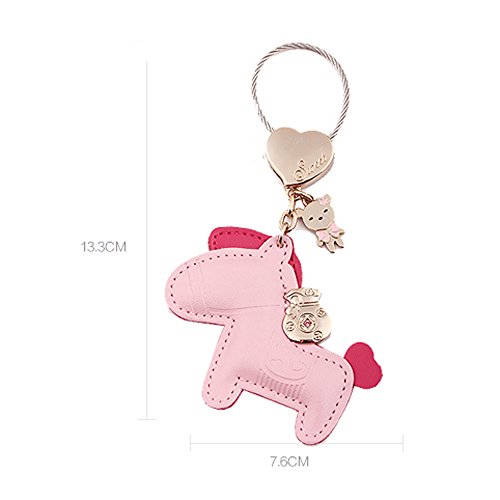 Jepeak Leather Key Chain Cute Luxury Horse Design Keychain Car Keys and Bags Pendant for Lover Keyring Trinket - Pink
