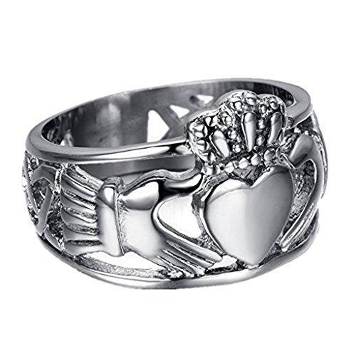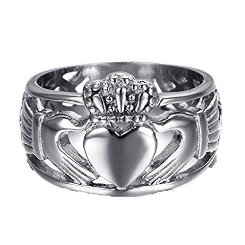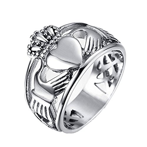 LEEYA NL28 Jewelry Men's Stainless Steel Crown Claddagh Ring with Celtic Knot Eternity Design (9)