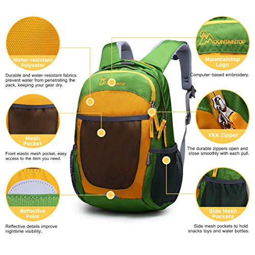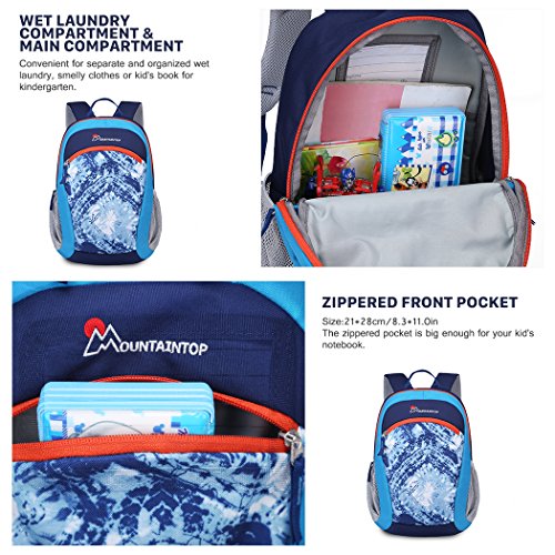 Studio : good outdoor Publisher : good outdoor Binding : Baby Product Product Description Mountaintop Kid Backpack for School Capacity: 1.Water-resistant Polyester 2.YKK Buckle 3.Bar Tack Technology 4.Side Mesh Pockets: Side mesh pockets to hold snacks toys and water bottles. 5.Sternum Strap: Balance your shoulder straps and adjust it for perfect fit. 6.S-shape Shoulder Straps: Padded and breathable mesh shoulder straps offer cushioned comfort, while also promoting air circulation along your shoulders. 7.Wet Laundry Compartment Main Compartment: Convenient for separate and organized wet laundry, smelly clothes or kid¡?s book for kindergarten. 8.Secondly Compartment:Big enough for a handkerchief, wet wipes, snacks or other small items.