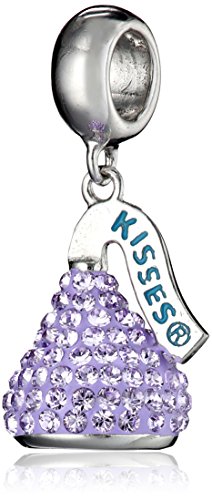 The Hershey's Kiss Pendant is an iconic sign of Love. Designed in Sterling silver this Small 3D Hershey's Kiss Charm is Made With Swarovski Elements. Each piece is set with Amethyst crystals; it measures 4 mm wide x 10 mm long and it comes with a ring that slides easily on a bracelet. Copyright 2009 The Hershey Company. HERSHEY'S, KISSES, the KISSES wrapped and unwrapped conical configuration and plume device are used under license.Feature