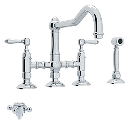 - Rohl A1458XMWS-2 Country Kitchen Three Leg Bridge Faucet with Metal Cross Handle, Polished Chrome