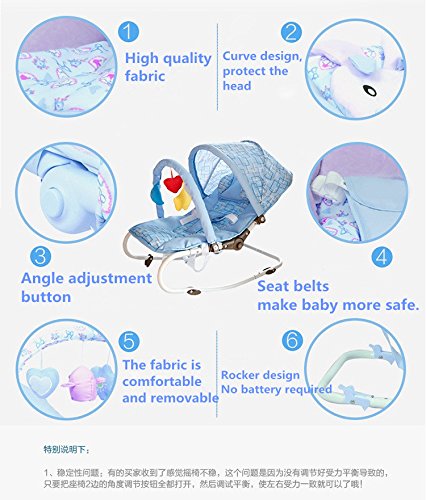 Studio : vedar Publisher : vedar Binding : Baby Product Product Description ASSEMBLY INSTRUCTIONS Note:Please read the instructions before using,not using the product in accordance with the instructions may cause the baby was seriously injured. Please be installled follow these steps before using the rocking chair: 1.Take out a cloth pad and metal frame,first the bottom of the back of the iron pipe insert into the relevant tube,Then upper tube is inserted upper relevant tube,Considered safe when hear the sound of "click",and to ensure that the connection spring round iron stuck holes. 2.The cloth pad on the back set into the front of the corresponding iron pipe. 3.The cloth pad on the front set into the front of the corresponding iron pipe. 4.Two straps of bottom of seat buckle tightening,adjust to the appropriate length,until the baby can sit comfortable. 5.Both side of the plastic button to adjust the rocking chair inclination switch,note till hear the button "click" in the rocking chair Tilt adjustment,so that the back of the rocking chair is considered locked,no sliding. 0