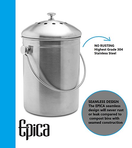 Top Rated Epica Stainless Steel Compost Bin 1.3 Gallon-Includes Charcoal Filter B00AMNCYNQ