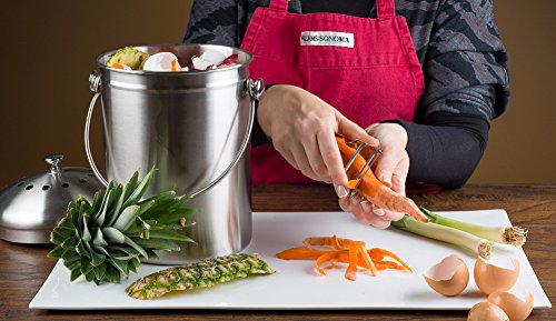 Stainless steel is the perfect design complement to the modern kitchen -- no need to hide it in a cabinet or under the sink. It won't rust, scratch or chip, and it's easy to clean. Plus, it doesn't harbor bacteria or leach unhealthy chemicals as plastic containers can do; this especially important if your compost will be used on food crops.