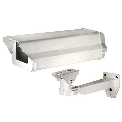 -. Feature : Aluminum camera housing with sunshade and mounting bracket / Bracket head rotates 360 degrees, tilts 90 degrees / Completely weather resistant with heater and blower / Lockable access latch protects from camera theft. Dimension: 14.5"(L) x 6"(W) x 4.25"(H) / Power requirement: 24V AC power adapter (not included)