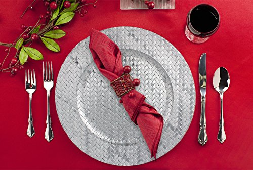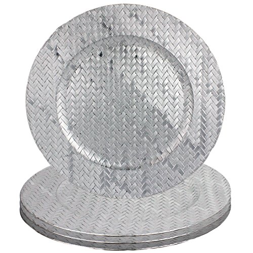 Studio : bogo Brands Publisher : bogo Brands Product Description Basket Weave Design 13" Round Plastic Charger Dinner Plates by bogo Brands (Silver Set of 6) Bring elegance to your family gatherings, dinner parties and banquets with these stylish basket weave textured charger plates! Perfect for any occasion from dinners to parties, weddings, bridal showers, baby showers, anniversaries and more! The dinner plates are 13" diameter and made with polypropylene. Hand wash only. (For decorative use only: do not put food directly on the charger plate.) Enhance your holiday happenings for Valentine's, Thanksgiving and Christmas with these basket weave patterned plates. Perfect to use with fine china. Great for wedding planners, event planners, caterers and restaurants. Get special bulk pricing when you buy large quantities! 0 |
