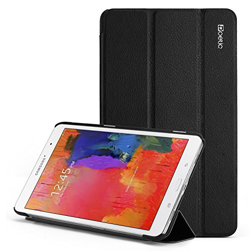 Sheathed in quality textured PU leather, the Slimline has the handsome looks to match its utility. The trifold cover folds up and magnetically snaps into a triangular stand, for comfortable typing and viewing positions. The velvety microfiber inner lining keeps the beautiful display dust-free, and the hard-shell polycarbonate back snaps on and protects the back of the tablet. Keep your Samsung Galaxy Tab Pro 8.4 shielded and unencumbered, as intended by the tablet's designers.