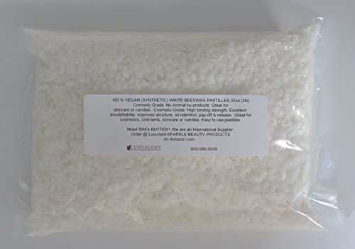 100% VEGAN PLANT-BASED Beeswax is a wonderful substitute - a FABULOUS ALTERNATIVE for those who want a NON-ANIMAL wax option. Uses as 1:1 replacement for Beeswax. Used to make food, candles, cosmetics and medicine. Easy to use. High binding strength, High saponification range, Excellent emulsification properties, improves structure, oil retention, pay-off & release. Our VEGAN beeswax has no scent and is clean, and perfectly filtered product without the debris and muddy color found in typical waxes. VEGAN Beeswax has considerable water-holding capacity. Adding it to body care products, salves, lotions and cosmetics will improve their appearance and consistency. You can also use them to make your own VEGAN aromatic candles. VEGAN Beeswax candles emit virtually no smoke, and they burn hotter and brighter than most other candles. VEGAN Beeswax is suitable for food and cosmetic uses. 45.0 - 55.0 C melting point. We are an International Supplier of unique, difficult to source ingredients.Feature