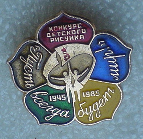 40 Years of the Victory in WW II Competition of children's drawing-let there always be peace USSR Soviet Union Russian Pin Badge