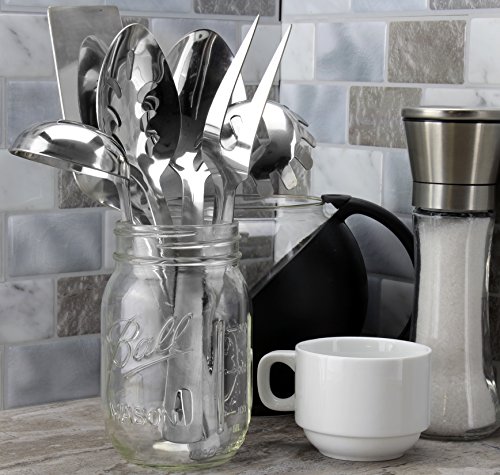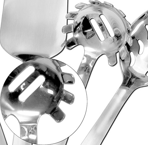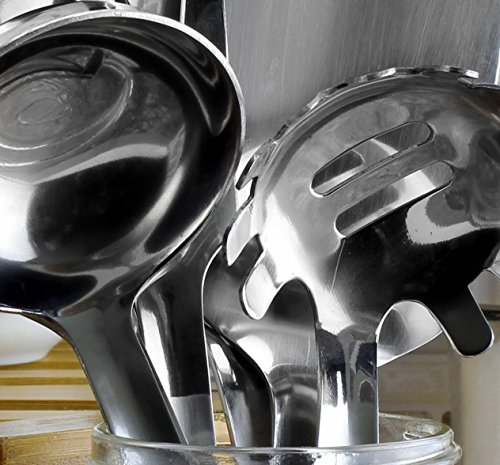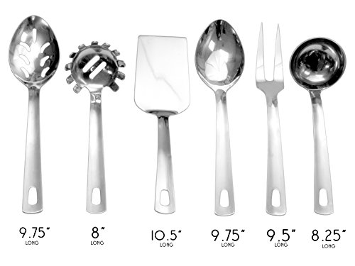 - VALUE SET OF 6 UTENSILS: Includes spoon, slotted spoon, two-prong fork, pasta server, ladle, and cake/casserole server