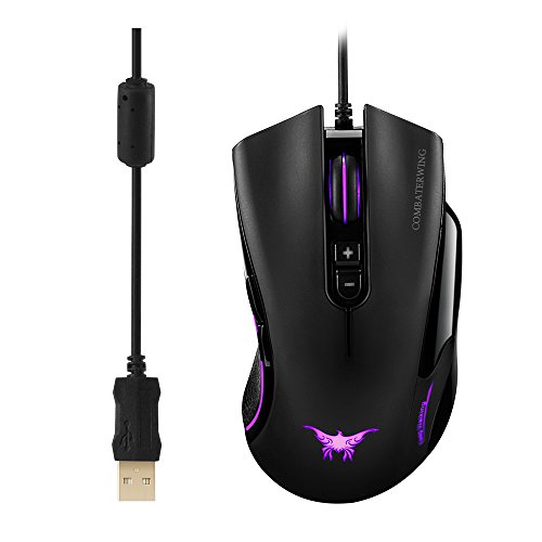BENGOO Gaming Mouse Mice Optical USB Wired Mouse for PC and Mac with 7 Buttons, Up to 4800 DPI, Adjustable DPI Switch Function, 6 Breathing LED Colors-Black