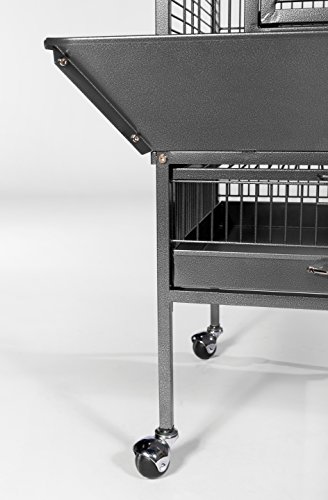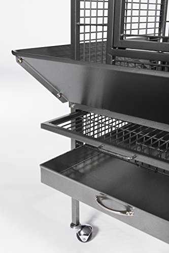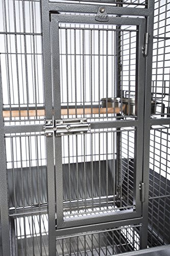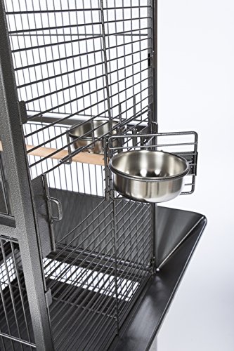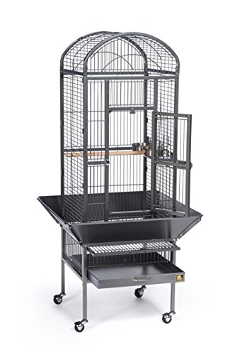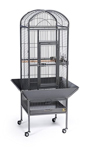 Studio : Prevue Pet Products, Inc. Publisher : Prevue Pet Products, Inc. Binding : Misc. Product Description Prevue Pet Products small Dome top bird cage Black Hammertone 34511 features a roomy and refined dome top roofline with Extra space for hanging toys and letting your bird stretch its wings. Expertly engineered in the us to be easily assembled and loaded with owner, and bird, friendly features, our wrought iron constructed cage offers quality craftsmanship at an affordable price. Rounded corner seed guards help control mess outside of the cage and are less likely to damage walls or catch on your clothing, seed guard measurements are 26 1/4" long and 26 1/4" wide. Both grille and debris tray are removable for ease of cleaning and the integrated cage stand sits on sturdy, easy rolling casters. The large front access door measures 8 ½" long by 18 ½" high and closes securely with a push button lock plus a wind bell lock to prevent any escape artists from pushing the door open. Included with this cage are 2 stainless steel 12 oz. Food/water cups, which lock into place within the 6" long by 4 3/8" high cup doors and a generously sized 11/16" wooden perch. Finished with a durable and elegant Black Hammertone powder coating, Prevue cages undergo independent lab testing and conform to the highest levels of pet safety. Prevue Pet Products small Dome top bird cage Black Hammertone 34511 is constructed from 9 10 gauge wire and measures 18" long, 18" wide and 54 5/8" high with 3/4" wire spacing. 0