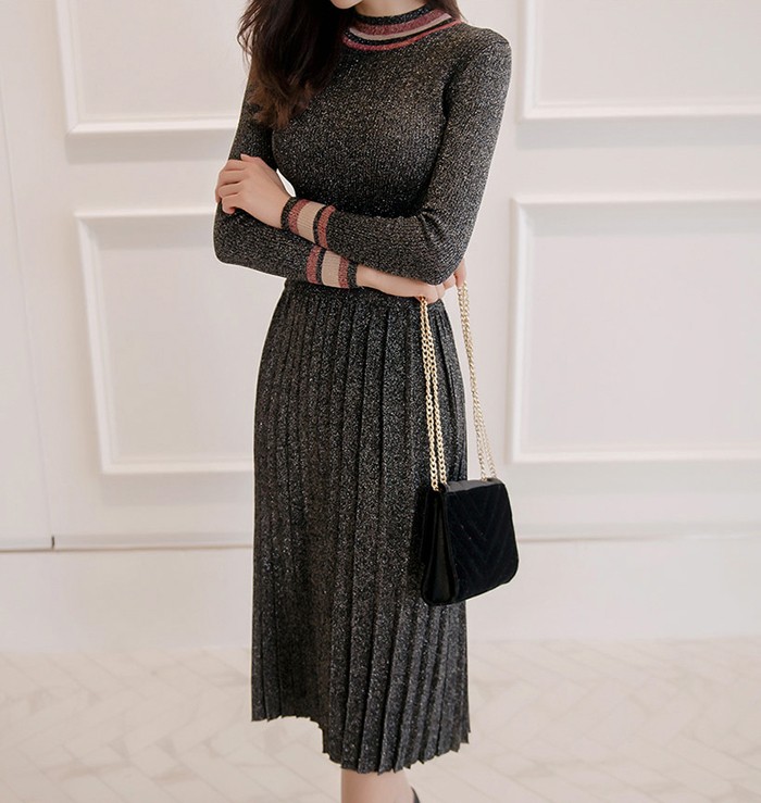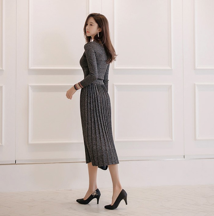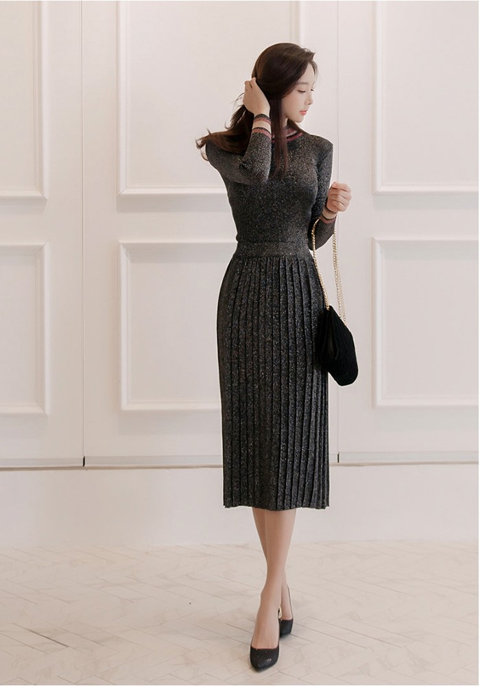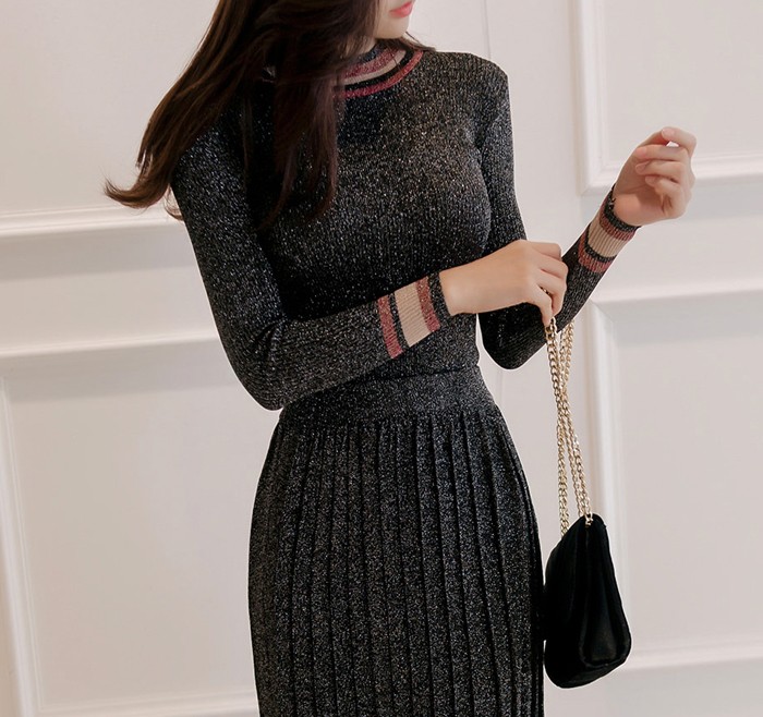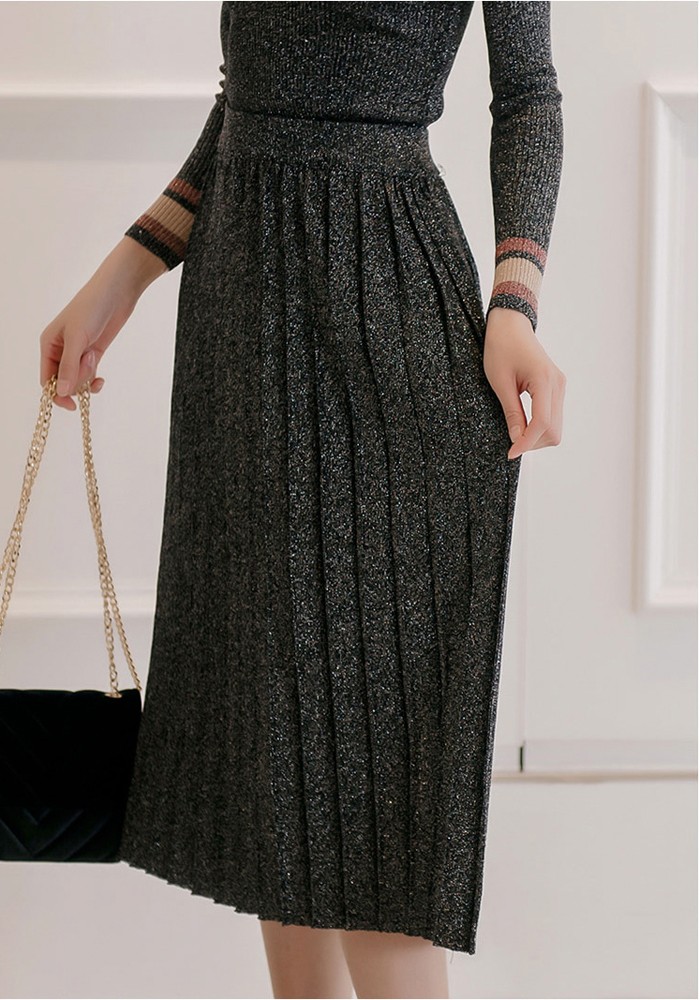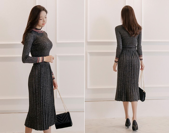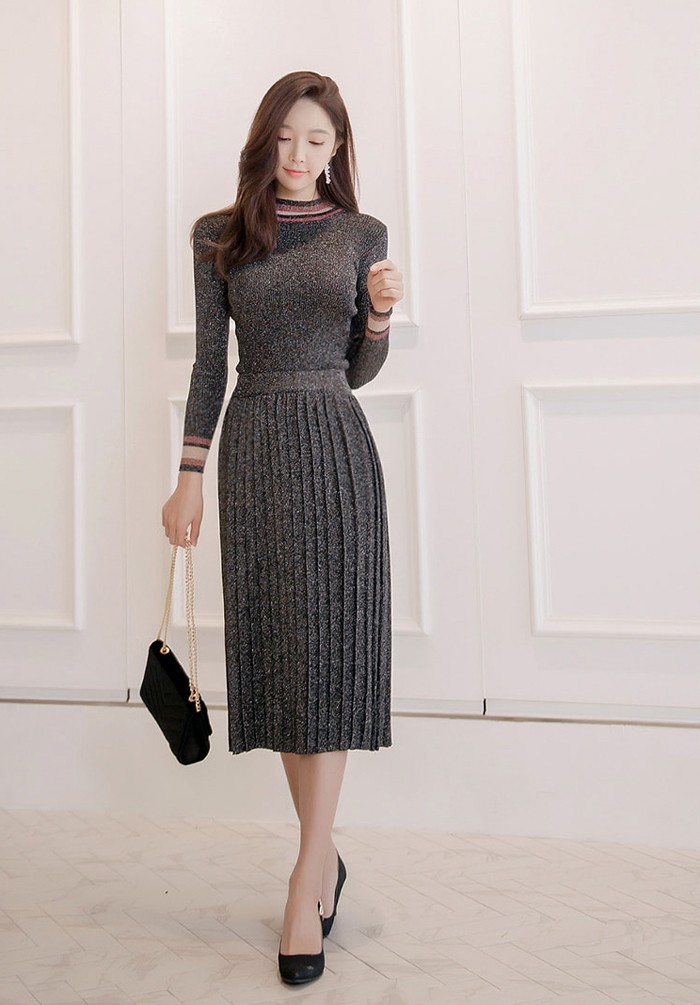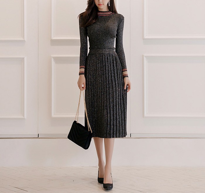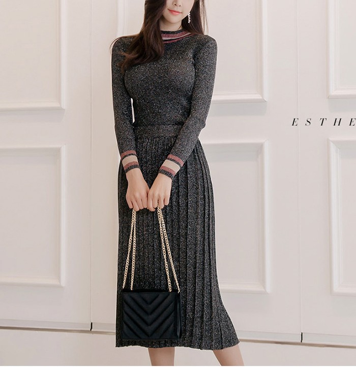 商品名:セットアップ トップス 長袖 スカート ロング丈 プリーツ