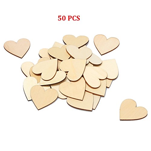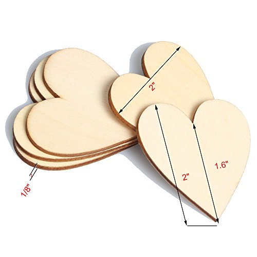 RERIVER 2-Inch Unfinished Wooden Heart Blank Wood Cutout Heart Slices Discs DIY Crafts(50pcs)