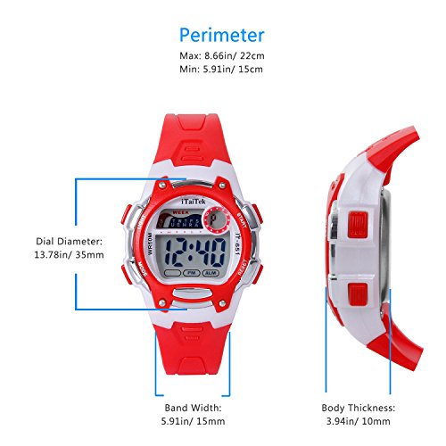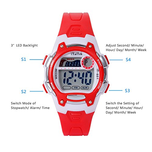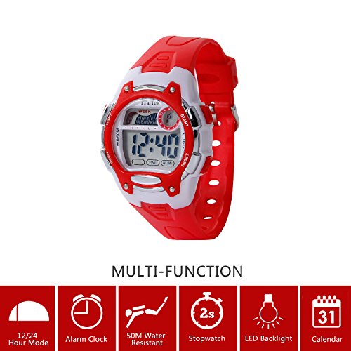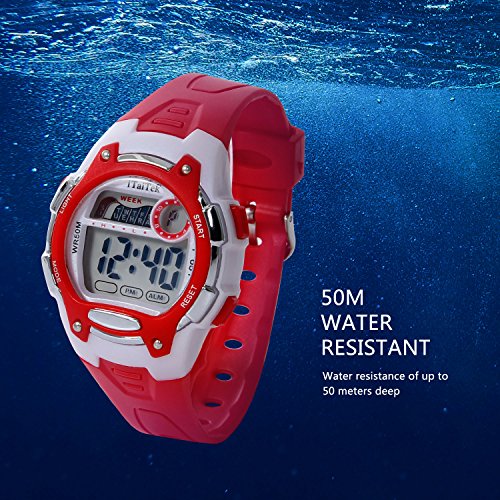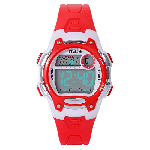 Hiwatch Kids Digital Watches Waterproof Led Sport Watches with Alarm for Boys and Girls, Red