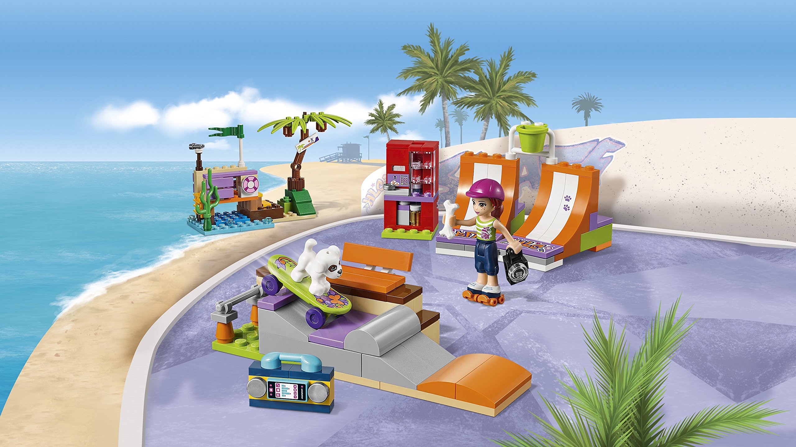 Hold skateboard and leave for Skate Park with Mia and dog Charlie! Listen to your favorite music in stereo while practicing the latest tricks with half pipes.