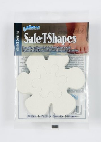 Studio : Compac Industries, Inc. Publisher : Compac Industries, Inc. Binding : Health and Beauty Product Description Keep your shower and bathtub safe with safe-t-shapes. Safe-t-shapes are decorative and functional bath appliques that prevent slipping and falling while in the bathtub or shower. Safe-t-shapes are permanent, so once in place, you’ll never have to worry about slippery bath surfaces again. So easy to apply just remove the adhesive backing, place on a clean surface and press firmly. 0
