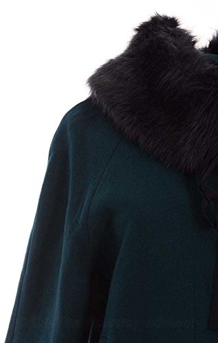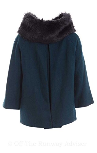 This capelet coat features wool blend fabric, faux fur removable collar, funnel buttoned collar, snap buttons front closure, side pockets, full lining, raglan 3/4 sleeves. ACTUAL MEASUREMENTS OF THE ITEM: Bust (in inches): 42 Length (in inches): 23.5