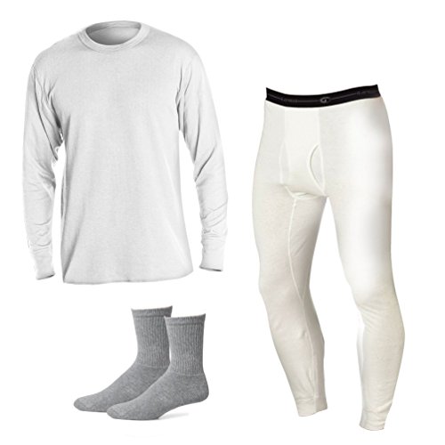 -. Feature : Long-sleeve crew neck shirt and ankle length bottom + FREE crew sock. / Choose this thermal set for everyday warmth during low activity levels. / Close-to-body fit. Ideal on its own or as base-layer underwear. / Ankle length bottom features a front fly and chill-blocking cuffs. / 2 layer texture knit traps air for a chill-blocking barrier to add warmth. / Non-chafe flat seams and tag-free wont itch for added comfort. / 6-oz. 60% cotton (for softness)/40% polyester (for durability).