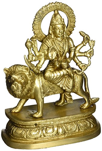 Brass Statue Durga Devi Idol Hindu Goddess for Puja Mandir Temple, H: 7.5 Inches, W: 1.7 Kg