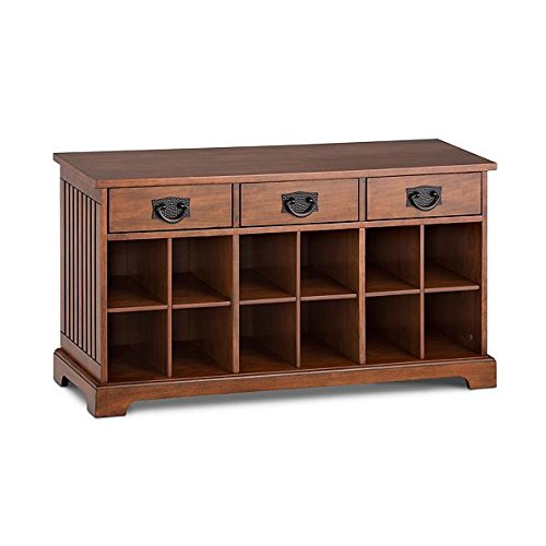 -. Feature : The Shoe Bench is as practical as it is beautiful, with 12 cubbies for footwear and 3 drawers with black metal pulls for gloves, scarves, or other items. / You'll have a comfortable place to sit as you remove or put on shoes or boots. / This entryway bench features quality furniture detailing and metal drawer pulls. / This shoe bench includes 3 pull-out drawers for extra storage. Weight capacity of entryway bench is 225 lbs. / Overall: 38-1/2"W x 13-1/2"D x 20-3/4"H Cubbies: 5-1/2"W x 13"D x 6"H