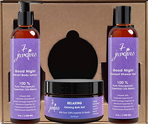 -. Title : 7 Jardins 100% Natural Aromatherapy Lavender Stress Relief Good Night Gift Set 3 Full Size Products 8 Oz Shower Gel & Body Lotion and Relaxing Bath Salt Bundle (100% Pure Essential Oils)