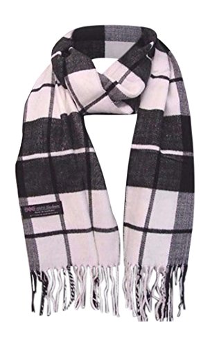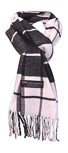 (Memory Wear)/Accessories/Cold Weather Accessories/DIRECT FROM USA/Memory Wear 100% Cashmere Plaid Scarf, Super Soft - White and Black