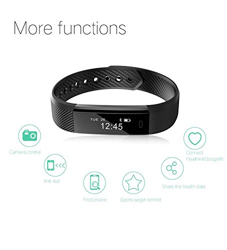 No Fitness,No Summer.Sports Fitness Tracker Powerful Function - Pedometer, Distance, Calories Burned Measuring, Sleep Monitor,Smart alarm clock, sedentary alert, finding phone, anti-lost alert, Incoming Call ID Show,SMS/Facebook/Twitter/WhatsApp/Linkedin/Instagram alert,calling reminder, camera remote capture, music control.(all this function need fitness watch synchronize with your smartphone by APP)
