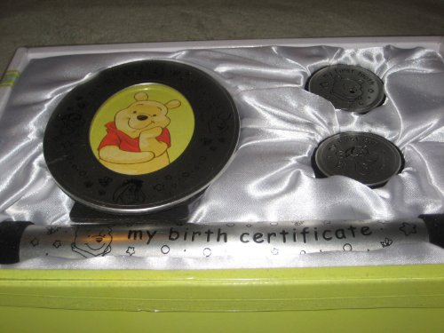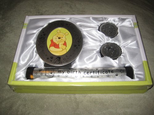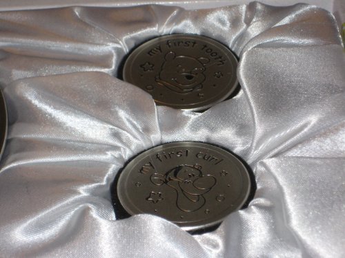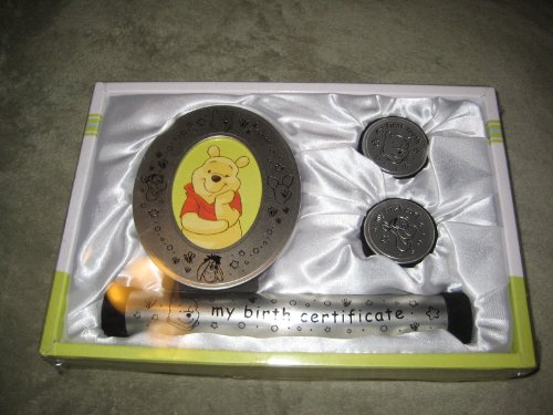 4 PIECE SET - Winnie The Pooh Frame, First Curl, First Tooth & Birth Certificate Holder - Silver / Pewter Tone