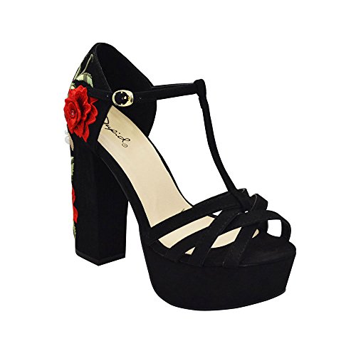 (Qupid)/Women's/Sandals/DIRECT FROM USA/Qupid Crush-32 Womens Embroidered Floral Platfrom Heels