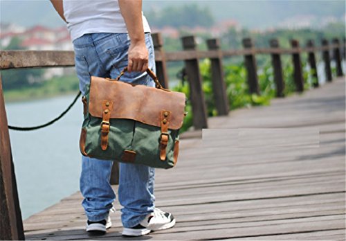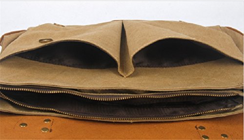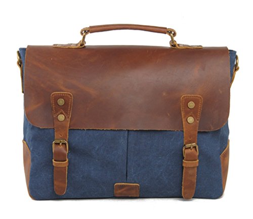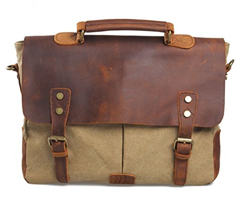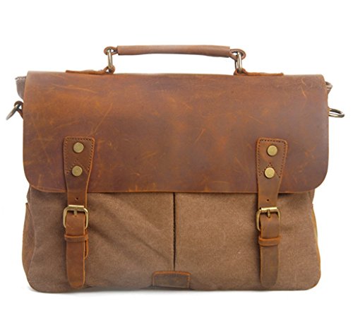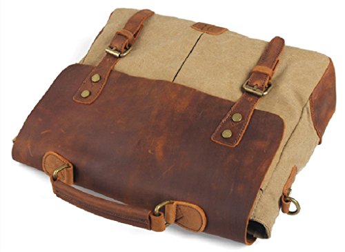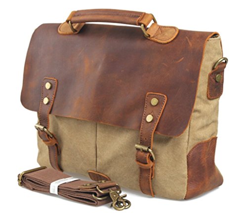 -. Binding : Personal Computers -. Brand : Bagtopia -. ClothingSize : Medium -. Department : mens -. Feature : Overall dimension: Approx. 14.2"L x 11"H x 3.9" W; Fits iPad or 14" laptop computer. / Main compartment & inside cellphone slot,card slot and zipper pocket. Under the flap,2 front opening pockets with magnet closure / Material:Vintage canvas and genuine horse leather. / The bag fits iPad,14" laptop computer,A4 files,notebook,cellphone,cards and all daily necessity around you. / Druable canvas messenger bag for men and boys.3 ways to carry:Handbag/Crossbody bag/Shoulder bag. -. ProductGroup : PC Accessory -. ProductTypeName : CARRYING_CASE_OR_BAG -. Size : Medium -. Title : Bagtopia Men's Vintage Genuine Leather & Canvas Laptop Messenger Bag Briefcase