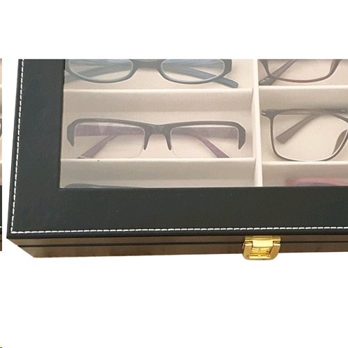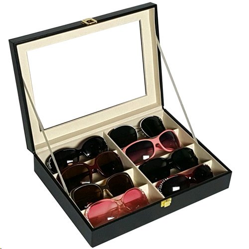 -. Binding : Kitchen -. Brand : Mooca -. Color : Black -. EAN : 0812646023936 -. Feature : Elegant Leather cover wooden box with glass top lid. / Features 8 fabric lined compartments that allow you to keep your eyewear seperate / Glass top cover for easy to find and keep dust away. / Can be used to organize for sunglasses, Jewelry, craft supplies, watches and different items in storage / size: 13" X 9 1/2" X 2 1/4"H -. IsAutographed : 0 -. Label : MOOCA -. Manufacturer : MOOCA -. Model : YET-1801 -. MPN : YET-1801 -. PackageQuantity : 1 -. PartNumber : YET-1801 -. ProductGroup : Home -. ProductTypeName : HOME -. Publisher : MOOCA -. Studio : MOOCA -. Title : Deluxe Leatherette Eyewear Case For 8 Frames Sunglasses / Reading Glasses / Jewelry, Watch Storage Case -. UPC : 812646023936