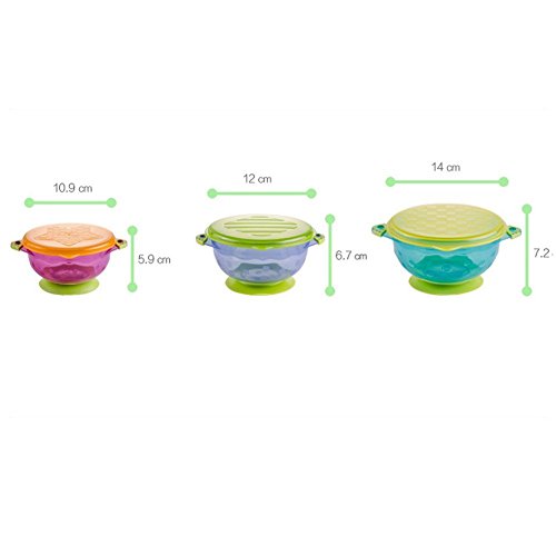 Coju-Gear Best Spill Proof Suction Bowls - FDA approved and BPA Free, 2 Free Spoons and 3 Different Size Bowls With Seal Easy Lids, Perfect For Storage and Easy to Go Snack Bowl