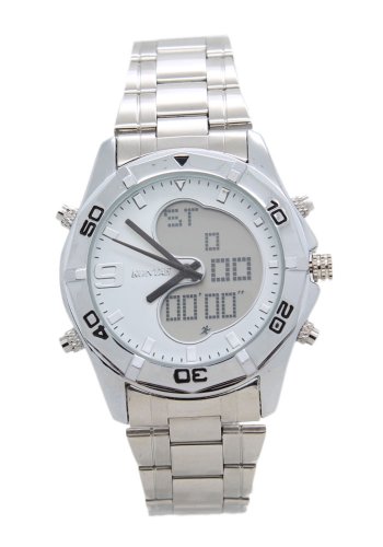 Studio : KONTAS Publisher : KONTAS Binding : Watch Product Description Specification: Goods Nameplate: KONTAS Case: Alloy Movement: ElectronicQuartz Bracelet / Strap: Stainless steel Diameter of case: 43 (mm) Diameter of dial: 32(mm) Width of band: 18 (mm) Thickness of case: 15 (mm) Color: White Movement model: SEIKO quartz movement Weight: 0.122 (Kg) Function: 1. Fashion and sport design with fashionable bezel. 2. Electro-luminescent Backlight in darkness LCD display hour minute second month week and AM/PM. 3. 12/24 hours dual time display mode. 4. Stopwatch function. 5. Functional alarm setup and hourly reminder. 6. Water resistant. 7. Quality plastic watch strap. 8. Kinds of colors to choice. Manual: Under clock mode as the above figure press L key EL backlighting for 3 seconds. Press S key date is on. Press R key to show the alarm time. A. Setting of seconds counting: under clock mode press M key to start seconds counting mode; Press S key to count press S key to suspend repress S key to continue the counting from the above reader press S key to stop press R key to clear to zero return to the seconds counting mode(0:00 00) Sectional timing. Press S key to start press R key to read seconds counting of first section (continuing); repress R key to read the second section. A number of sections are available. B. Setting of alarm: under clock mode press M key twice hours flashing press S key to set the hour; press R key minutes flashing repress S key to set the minute; repress M key to return to clock mode. Hold R key on and press S key to turn alarm on/off (the alarm signal shows the alarm is set otherwise the alarm is off) . C. Setting of clock timing alarm: under clock mode hold R key on and press M key to turn the clo 0