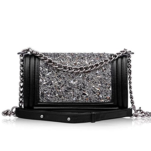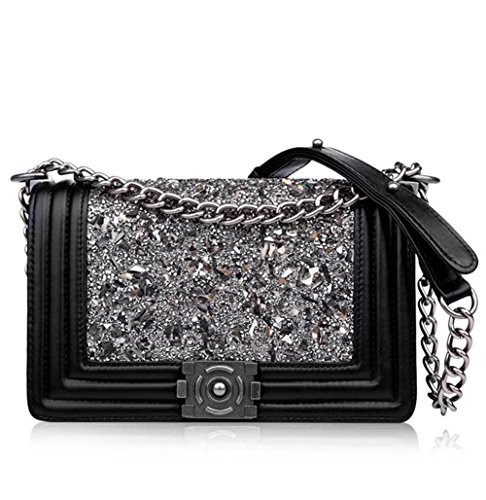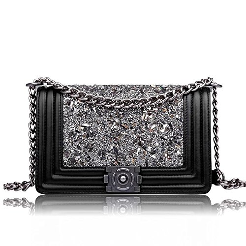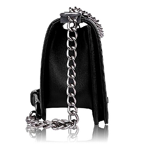 Ainifeel Women's Genuine Leather Quilted Diamond Shoulder Handbags And Purses With Chain Strap