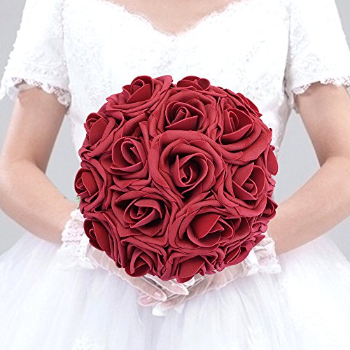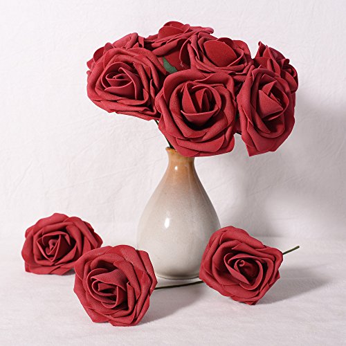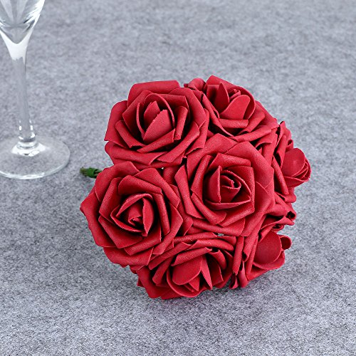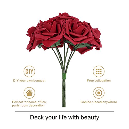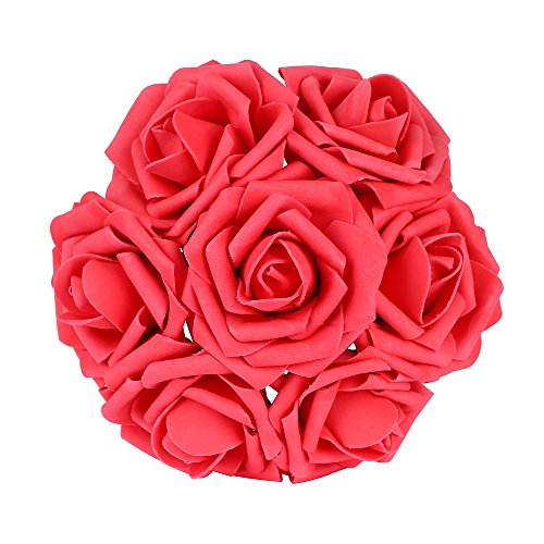 PROPER SIZE: total height of each artificial foam rose is about 22cm/8.6inch, stem height about 18cm/7.1inch, head across about 8cm/3.1inch. Please allow little difference in size due to manual measurement.