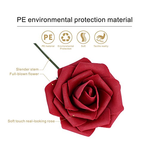 HIGH QUALITY SECURE MATERIALS: This artificial flower is made of high quality soft latex foam. We use this material to make these artificial flowers according to the look of fresh rose to make them look vivid. Also the artificial roses are made of eco-friendly PE material, please rest assured.