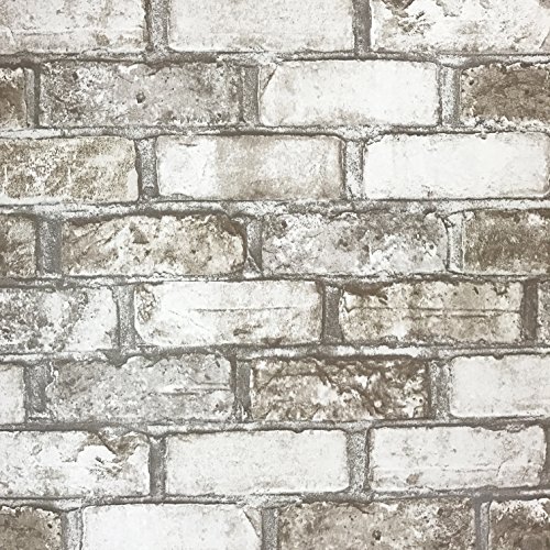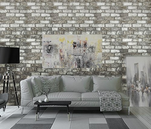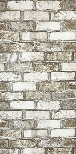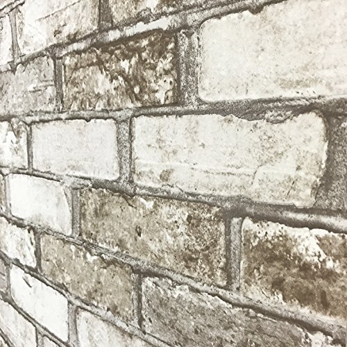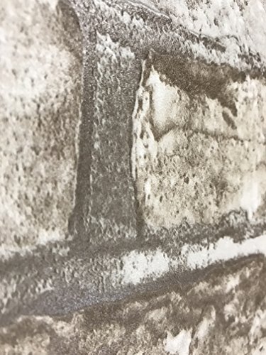 -. Title : Slavyanski vinyl wallpaper gray grey white brown rust rustic coverings textured pattern vintage realistic stone faux brick double roll wallcovering wall paper decal decor textures 3D washable modern