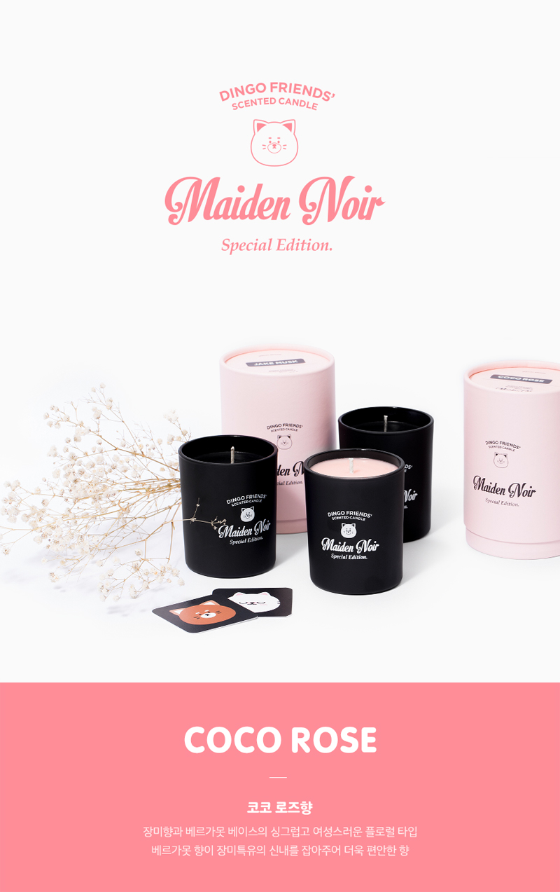 | '젊은여성의 흑백 영화'라는 의미인 메이든느와르는 트렌드 아카이브 및 향기를 브랜딩하는 라이프 스타일 브랜드입니다. 블랙, 핑크를 메인 컬러로 편안한 향기 오브제를 선보이고 있습니다. 메이든느와르의 향기 오브제는 29cm 입점, 싱가포르 최대 규모 편집샵 액츄얼리(Actually)입점 등 2030세대의 라이프 스타일을 선도하고 있습니다. 메이든느와르는 100% 천연 콩을 원료로 한 미국산 천연 소이 왁스와 프탈레이트 무첨가 미국산 향료를 사용합니다. 천연 소이 왁스 파라핀에 비해 연소시간이 길며 수축이 적고 그을음이 적습니다. 깨끗하게 연소되며 유해성 물질로부터 자유롭습니다. 프래그런스 오일 소이 왁스 기준 양초 제조 목적 향료로 IFRA(국제향료협회) 향초 피부비접촉용품으로 인증받았습니다. 산업용 화학물질로 많은 플라스틱 제품 가소제로 사용되는 유해물질인 프탈레이트가 첨가되지 않습니다. |
